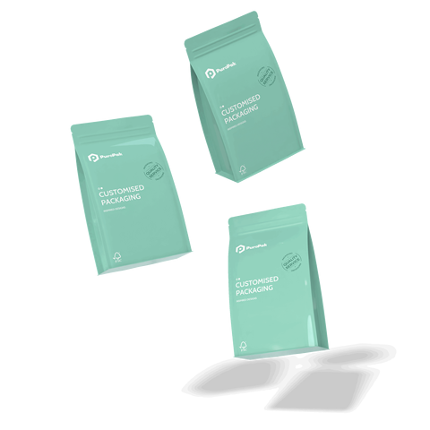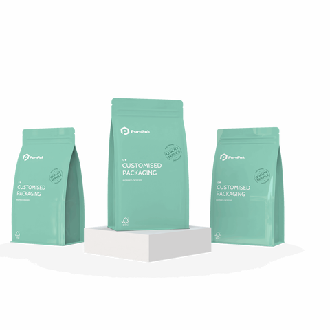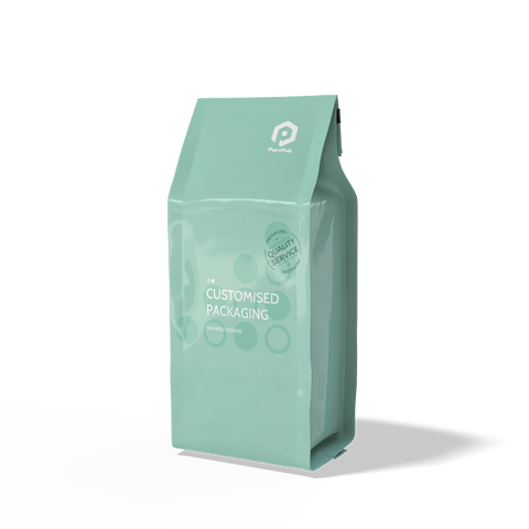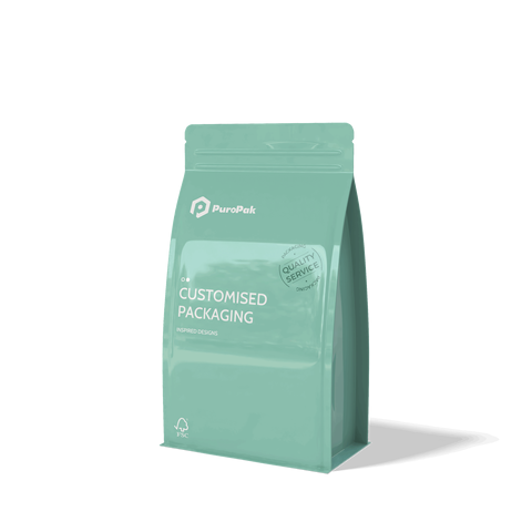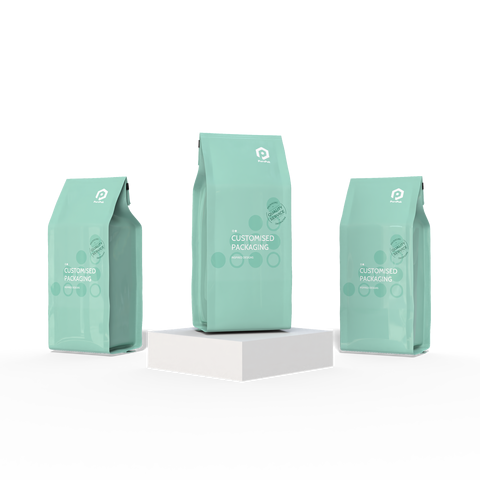 Bolsas de embalaje de plástico de fondo cuadrado de diseño personalizado Materiales reciclados Bolsa de café flexible de fondo plano